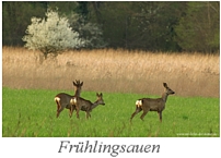 Rehe, Feldhasen und Fasane wird man hier am ehesten antreffen, vor allem am frühen Morgen oder gegen Abend. Über den Auenwäldern sieht man dann auch oft Greifvögel kreisen, Bussarde, Rotmilane, Schwarzmilane und andere.